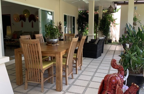 This villa is new,deluxe,fully furnished and equipped, lovely decorated with Thai ornaments. It can be good for couple, family, friend. The total size area is 450 Sq.m.